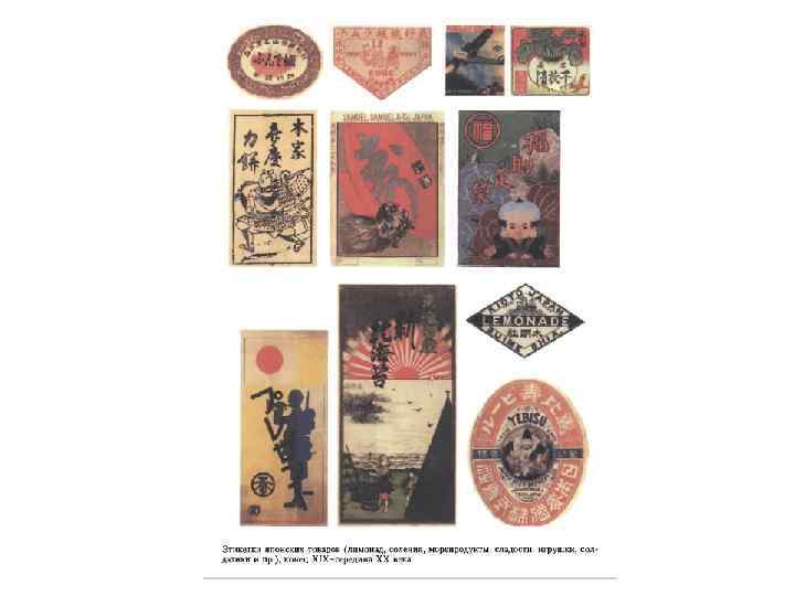 • Графический дизайн. Промышленная графика В конце XIX-начале XX века после открытия границ усилиями некоторых коллекционеров в Европе создается не просто интерес, а мода на японское искусство и все, имеющее японское происхождение. Торговля немыслима без этикеток, упаковки, а те, в свою очередь, без товарных знаков. В тот период в японском языке вместе с другими европейскими заимствованиями появилось слово «рабэру» (от голландского лейбл - товарный знак). В массовом европейском сознании быстро сложились определенные стереотипы, ассоциирующиеся с Японией. Такими образами-символами оказались ветка сакуры, ирис, веер, волна, а также персонажи классической гравюры- грозные самураи и скромные красавицы, мудрые старички и хитрые крестьяне. Эти легко узнаваемые мотивы стали обязательными элементами этикеток, упаковки, рекламных материалов для товаров из Японии. Еще одной характерной чертой было использование в промграфике одновременно иероглифов и надписей латинским шрифтом, которые порой составляли самобытные орнаменты. В итоге сложилась своеобразная и в чем-то парадоксальная стилистика а-ля «японщина» . Стилистика, действительно, парадоксальная, т. к. при тонком вкусе и высоком эстетизме японские художники-графики создавали рабэру в духе европейского кича, в этаком «конфетном» стиле, процветавшем в массовой европейской продукции в конце XIX века. Возникла своеобразная «постмодернистская» ситуация (в период начала модернизма), получившая широкое и официальное распространение только в 1970 -1980 -е годы. Дизайнграфика Японии конца XX века в лучших своих образцах избавилась от эклектики начала века и отошла от смешения стилистик 20 -30 -летней давности. На конкурсе упаковки 2000 года четко различались разработки, предназначенные для внешнего и внутреннего рынков. Оригинальность, функциональность и эстетичность органично сочетаются, например, в наборе для меда дизайнера Сокаты Цукасы. Это действительно не упаковка, не отдельные элементы, а набор из емкости простой формы (баночка) для продукта (меда) с этикеткой, решенной на основе контраста цветов (бледно-серого и черного) и элементов графики (иероглифы, резко отличающиеся по размеру), а также палочки-лопаточки, по- простому «прикрученной» бечевкой к баночке.
