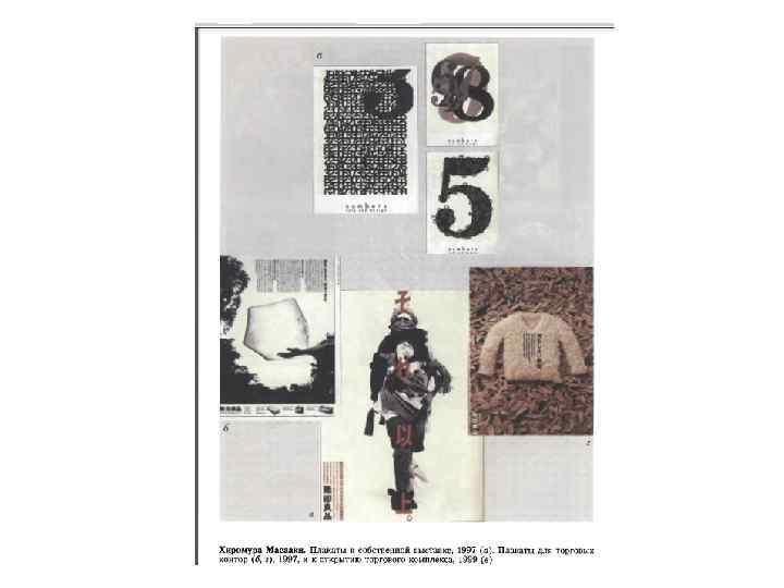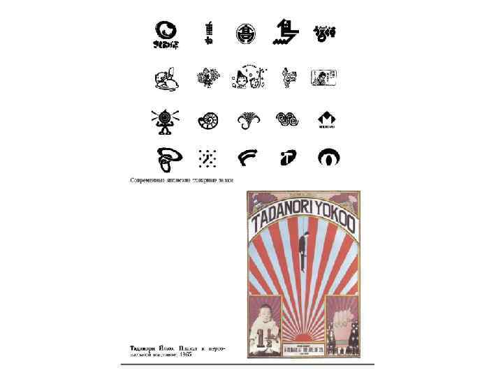 • • Японский плакат, как его узнали в мире во второй половине XX века, также явился продолжением многовековых национальных традиций изобразительной культуры, для которой свойственны минималистская простота решений, идеальное равновесие всех элементов композиции, четкая и недвусмысленная смысловая нагрузка. В последние десятилетия прошлого века японский плакат стал все больше «впитывать» типичные черты массовой рекламной графики Америки и Европы. Таданори Йоко (род. в 1936) - один из самых известных мастеров японского плаката. Сам дизайнер ведет отсчет своего творчества с плаката для персональной выставки 1965 года. Йоко быстро осознал, что для достижения международного признания недостаточно таланта и следования национальным традициям, а необходимо использование приемов интернациональной стилистики и текстов на английском языке. Характерный для плакатов Йоко фон в виде расходящихся лучей стал своего рода авторской подписью (хотя понятно, что это привет русскому авангарду 1920 -х). В начале XXI века он продолжает делать все такие же яркие, порой шокирующие произведения: ему достаточно лет и опыта, чтобы оставаться актуальным для разных поколений Хиромура Масааки (род. в 1954), представитель более молодого поколения японских дизайнеров, начал активно работать в графике с 1977 года. Он делает плакаты стильные и холодные - не совсем чисто японские плакаты, не совсем европейские по типографике, но удивительно сочетающие в себе Восток и Запад. Его коронный прием - увеличенные фотографии, подчеркивающие абрис предметов и «держащие» макет плаката подобно якорю. Лаконичные композиции и сдержанные цветовые решения характерны для каталогов универмагов (например, «Мидзируси Риохин» ). Они подчеркивают изысканное качество рекламируемых товаров. Хиромура Масааки - член Ассоциации японского знака (1983), член Японской ассоциации графиков-дизайнеров (1988). Его выставки с успехом проходят не только в Японии, но и в Нью-Йорке, Москве и других городах. Заказчиками Масааки являются всемирно известные фирмы и банки.