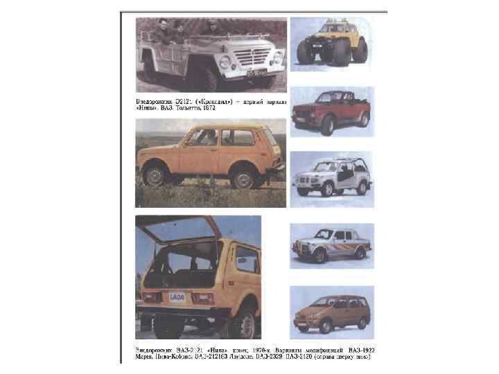 • Волжский автомобильный завод (ВАЗ) был построен в результате подписания 4 мая 1966 года и реализации «контракта века» - договора о техническом содружестве с итальянской фирмой ФИАТ. Планировался выпуск 600 тыс. легковых автомобилей в год. За прототип машины, которую предстояло выпускать, был принят ФИАТ-124 классической заднеприводной компоновки, признанный лучшей моделью 1966 года. По результатам интенсивных испытаний в нашей стране (в самых неблагоприятных климатических условиях) были внесены значительные изменения в прототип: усиленный кузов, новая конструкция двигателя и тормозов, дорожный просвет 170 мм вместо 130 и пр. Автомобиль ВАЗ-2101 стал определенной вехой в развитии отечественного автомобилестроения. Он принес с собой новейшую технологию, современные технические решения, качественно иной подход к конструированию массовых легковых автомобилей. Первые серийные автомобили ВАЗ появились на дорогах страны осенью 1970 года, а в декабре 1973 года с конвейера сошла миллионная малолитражка. Автомобиль получил торговое наименование «Жигули» . Для экспорта первую и последующие модели завода назвали «Лада» . Особый этап в жизни коллектива тольяттинских дизайнеров связан с приходом на должность главного дизайнера предприятия М. В. Демидовцева. Демидовцев Марк Васильевич (род. в 1929) после окончания ЛВХПУ им. В. И. Мухиной (1960) успешно работал на Павловском автобусном заводе, создал там службу дизайна. Автобусы ПАЗ, в т. ч. класса «Турист» , созданные при его участии получили ряд международных престижных наград (Золотые медали в Ницце, Франция, вторая половина 1960 -х, и др. ). Демидовцев пришел на ВАЗ в 1970 году, по 1997 год был главным дизайнером, создал Центр стиля завода. Он был вдохновителем и участником разработок многих моделей. Сегодня особой популярностью и спросом в нашей стране пользуются «внедорожники» различных зарубежных фирм. Стоит напомнить, что эти автомобили ведут свою родословную от нашей отечественной «Нивы» из Тольятти.