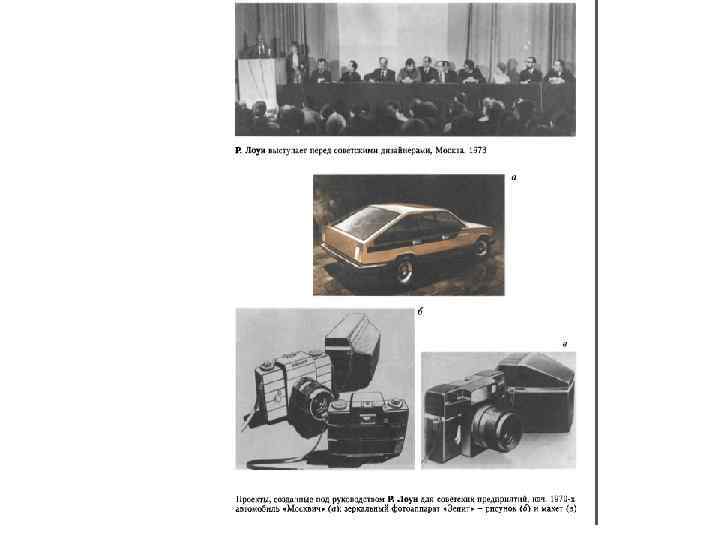 • • • С именем Реймонда Лоуи связаны понятие феномена универсальности (по словам французского критика М. Рагона) и суждение, распространенное в 1960 -е годы: «Дизайнер проектирует все - от иголки до самолета» . В 1945 году им было создано собственное независимое бюро - «Реймонд Лоуи Асс» (с 1961 - «Р. Лоуи и У. Снейт» ), Бюро занималось разработкой форм промышленной продукции, средств транспорта, оформлением магазинов и интерьеров офисов, упаковкой, созданием графических фирменных стилей компаний и фирм. Р. Лоуи спроектировал несколько моделей автобусов, в т. ч. «Скайнскрузер» . Прототип «полуторапалубной» машины был создан в 1948 году, а серийный выпуск начался в 1954. Р. Лоуи в своем выступлении на 18 -ой ежегодной конференции Общества дизайнеров (1962) призывал отказаться от применения методов стайлинга и в основу проектирования автомобилей положить законы аэродинамики и принципы эргономики. Именно с учетом этих требований был разработан автомобиль «Аванти» . Завершающим этапом автомобильного дизайна явился «Экспериментальный безопасный автомобиль» , построенный и испытанный в 1972 году. Плодотворным и приобретшим сенсационность оказалось сотрудничество Лоуи с НАСА (Национальным управлением по аэронавтике и исследованию космического пространства США): работа над жилыми отсеками космических аппаратов «Аполлон» и «Скайлэб» , фирменным стилем Управления, включая форменную одежду. Реймонд Лоуи активно работал и для зарубежных стран. В 1953 году, когда фирму «КЭЭ Р Лоуи» . Здесь выполнялись заказы для фирм Франции, Италии, Бельгии, Нидерландов. Творчество Реймонда Лоуи во многом способствовало осознанию задач и средств дизайна в Америке и Европе. Он одним из первых стал проводить в жизнь идею комплексного подхода к дизайнерским проблемам, идеи коллективной работы над проектом. Основным в деятельности коллективов под его руководством было стремление к возможно более широкому охвату всех аспектов каждой проблемы, тщательная увязка всех составляющих проекта. Каждой разработке предшествовал огромный объем исследований социологов, психологов, инженеров и дизайнеров. Сотрудники Р. Лоуи изучали спрос, непременно исследовали изделия конкурентов, организацию работы и т. д. Одним из принципов Р. Лоуи был контроль за изготовлением опытного образца, за выпуском первой партии продукции. Невозможность следования этим принципам по объективным причинам обусловила неудачу выполнения заказа для советской промышленности.