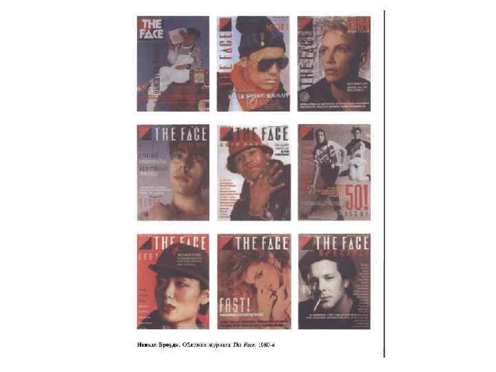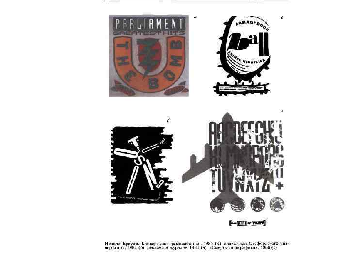 • Невилл Броуди (род. в 1957) приобрел весьма высокий авторитет в мировом графическом дизайне в 1980 -1990 -е годы в достаточно молодом возрасте. В годы учебы (вторая половина 1970 -х) увлекался такими течениями в искусстве как дадаизм, конструктивизм, экспрессионизм, испытал влияние творчества наших соотечественников - Александра Родченко и Эль Лисицкого. Как и большинство его современников, Броуди переболел панк-движением. Это движение был актом протеста, разрыва с конформистским прошлым, актом, подчеркнем, дурного вкуса, даже пошлости, часто сопровождавшимся насилием. У панков «выходили» собственные журналы, так называемые фанзины: самиздатовские журналы различных направлений поклонников фанов - молодежной культуры или рок-групп. В оформлении журналов четко проявилась идеология панков, для которой книжная анархия сама по себе была слишком структурированной системой. В художественных учебных заведениях тогда смешались улично-провокативная и революционно-университетская культуры. Панк уже завоевывал огромную молодежную аудиторию, а студенческие работы Броуди получали негативную оценку преподавателей, утверждавших, что «это не имеет коммерческого успеха» . В начале 1980 -х годов Броуди, оформляя конверты для грампластинок, имел возможность воплощать свои дизайнерские затеи. Он активно использовал фигуративные иллюстрации собственного изготовления. Настоящая работа на ниве типографики началась с его приходом в коммерческий журнал ≪The Face» (1981— 1986). Журнал стал своего рода исследованием возможностей трансформации контекста визуальными средствами. Агрессивный дизайн, первичный по отношению к тексту, активная работа со шрифтом, самые разные приемы, начиная от уменьшения заголовка до минимальных размеров и заканчивая тотальным доминированием буквицы. В сущности, это было начало «новой волны» 1980 -х годов в графическом дизайне. У Броуди за короткий срок появилось множество не просто последователей, а откровенных имитаторов. Броуди трудился и для других журналов - как английских, так и итальянских, французских. Он оформлял книги и грампластинки, создавал плакат и новые шрифты. Телекомпании и телепрограммы заказывали ему фирменные знаки (логотипы). Работая для советской студии грамзаписи «Мелодия» , он «долго возился с кириллицей» . В его арсенале появились различные концепции стилеобразования - от конструктивизма до минимализма. 1987 год - открытие собственной «Броуди-студио» в Лондоне, выполнение заказов для престижных фирм, в т. ч. из Берлина, Токио. В сентябре того же года вышел в свет первый альбом «Зе грэфи лэнгуич оф Невил Броуди» (графический язык Н. Броуди). Альбом закрепил за дизайнером статус звезды первой величины и подвел итог докомпьютерного периода его творчества. Затем начался период работы в мире электронных коммуникаций, когда складывались основы нового графического языка - языка 1990 -х годов. Первым его компьютером был подержанный «Макинтош» с черно-белым монитором. В 1990 -м году Броуди совместно со Стюартом Йенсеном основал компанию «Фонт-Уорх» , стал директором «Фонт шоп интернэйшн» и начал выпуск экспериментального шрифтового журнала «Фьюз» (некоммерческий проект). В 1994 году был издан второй альбом, демонстрировавший новое кредо Броуди и включавший его личные работы 1988 -1994 годов - 930 иллюстраций, из них 784 - в ц