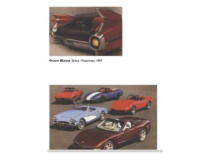 • Распространение различных, в т. ч. резко противоположных концепций в дизайне, радикализм вчерашних студентов с их борьбой против авторитетов вызвали к жизни революционные веяния в стилистике формообразования. Молодые дизайнеры черпали вдохновение в крайних элементах массовой культуры комиксах, архитектурных формах придорожных закусочных, автомобилях 1950 -х годов - огромных по размерам, с хвостовыми «оперениями» и «реактивными дюзами» , обилием хромированного металла. Поп-арт и творения его лидера Энди Уорхола начинали все активнее использоваться в дизайне. Усилилось влияние европейского дизайна, прежде всего скандинавского и итальянского. Все это в сочетании с новыми материалами и технологиями существенно расширило границы приемов формообразования, использования цвета и текстуры. Смешение различных стилистических направлений, эклектика станут главной приметой второй половины и, особенно, конца XX века.