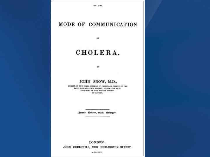 15 марта 1813 г. В этот день родился доктор Джон Сноу (Snow, John, 1813 -1858), которого по праву считают отцом анестезиологии и первым профессиональным анестезиологом • После публичной демонстрации общей анестезии в США эфир с этой же целью стали применять и в Англии. Джон Сноу первым из врачей провёл научные исследования эфира и физиологии общей анестезии, и в 1847 г. опубликовал первую книгу по общей анестезии - Об ингаляции эфира (On the Inhalation of Ether). • Пытаясь решить проблему дозирования анестетика, он изобрел специальный ингалятор для эфира. Когда стало известно о применении хлороформа для анестезии, Сноу изучил его свойства и создал ингалятор также и для этого препарата. Его вторая книга по общей анестезии - О хлороформе и других анестетиках (On Chloroform and Other Anaesthetics) - была издана посмертно в 1858 г. • Джон Сноу был также и пионером эпидемиологии: он помог остановить эпидемию холеры в Лондоне в 1854 г. , предположив, что вызывающий холеру возбудитель передаётся через желудочно-кишечный тракт, а не воздушно-капельным путём. Более того, он установил причину эпидемии и указал на путь ее предупреждения.