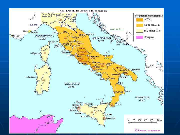 Основные этапы завоевания 1 этруски 2 латины 3 4 5 V- н. IV вв. до н. э. Н. V в. до н. э. Создание Римсколатинского союза Вольски, эквы V в. до н. э. Галлы Н. IV в. до н. э. Самниты К. IV–н. III вв. до н. э. 3 Самнитские войны Образование и роспуск Самнитской федерации Н. III в. до н. э. Пиррова война 6 греки