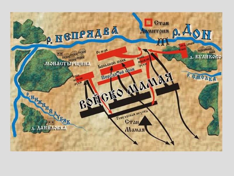 Дмитрий Иванович Донской (1359-1389). 1375 г. – последняя (1368, 1371, 1372) московско-тверская война, присоединение Владимирского княжества к Москве; 1374 г. – съезд князей в Переяславле Залесском; 1377 г. - нападение воеводы Боброка на г. Булгар и получение дани, р. Пьянь; 1378 г. – сражение на р. Воже; 8 сентября 1380 г. – «Мамаево побоище» на Куликовом поле; 1382 г. – поход хана Тохтамыша на Москву; 1389-1425 гг. – княжение Василия I; 1425-1462 гг. – княжение Василия II; 1428-1453 гг. – феодальная война между потомками Дмитрия Донского Василием II – Юрием Дмитриевичем, Василием Косым и Дмитрием Шемякой.