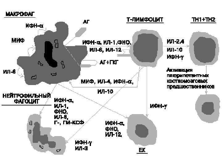 Цитокиновая сеть. Взаимодействие между лимфоцитом, макрофагом и другими клетками иммунной системы