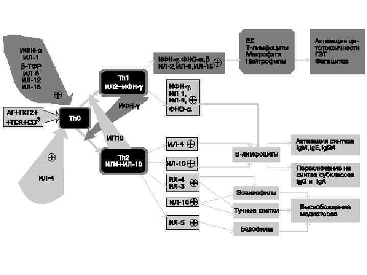 “Наивные” CD 4+-лимфоциты ИЛ 2 Th 1 -лимфоциты ИЛ 2 ИЛ 3 ИФН ФНО ГМ-КСФ Th 0 -лимфоциты Th 2 -лимфоциты ИЛ 3 ИЛ 4 ИЛ 5 ИЛ 6 ИЛ 9 ИЛ 10 ИЛ 13 ГМ-КСФ Th 3 -лимфоциты TGF-