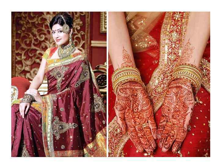 • В Индии украшения всегда были не роскошью, а необходимостью, появиться на людях без них считалось непристойностью, а лишиться своих украшений для женщины было позором. Кроме украшений из золота и серебра, женщины Индии украшали себя цветами: букетами, венками, гирляндами. Иногда даже один свежий цветок, вонзённый в причёску, завершает внешний образ.