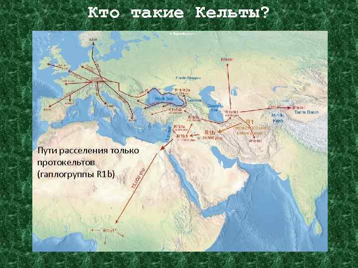 Кто такие Кельты? около 15 тыс. лет R 1 b прото-кельты R 1 a прото-славяне Около 15 тыс. лет назад она разделилась на две гаплогруппы : R 1 a – прото-славян и R 1 b – прото-кельтов.