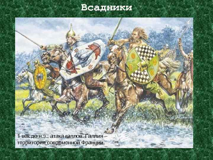 Всадники 1 век до н. э. , атака галлов. Галлия – территория современной Франции.