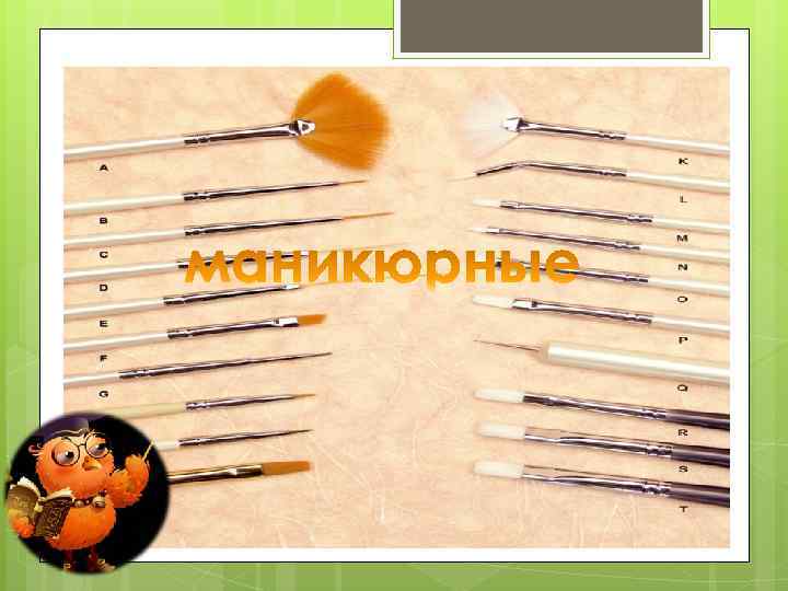 маникюр Для маникюра кисточки используют Маленькие, миниатюрные , И зовутся они маникюрные.