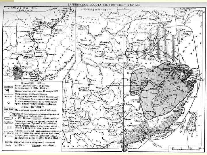 Вторая опиумная война (1856 - 1860 гг. ) n В 1851 - 1864 гг. в Китае шла гражданская война. Ослабление китайской имперской власти после первой опиумной войны стало переломным моментом в истории Китая. На территории Китая образовалось Тайпинское государство, с которым китайское правительство вело изнурительную борьбу. n На первых порах гражданской войны иностранные торговцы и миссионеры сочувствовали тайпинам. n Формально Великобритания, Франция, США на первоначальном этапе тайпинского восстания соблюдали нейтралитет. Однако, на самом деле, они уже в 1854 г. попытались использовать гражданскую войну в своих корыстных целях.