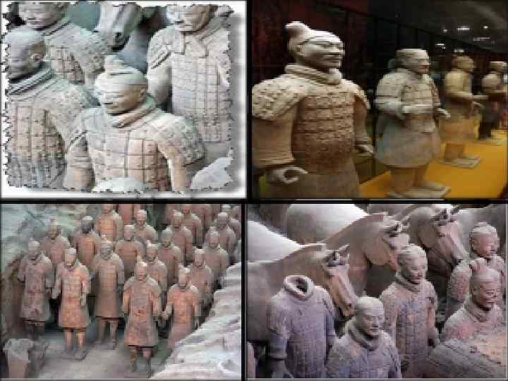 Терракотовая армия, погребённая (210 -209 год до н. э. ) вместе со своим правителем Цинь Шихуанди должна была олицетворять его мощь и после кончины. Вместо живых воинов были похоронены их глиняные копии, что некоторыми специалистами расценивается как весьма прогрессивный шаг. Но кроме статуй по свидетельствам источников, было закопано немало живых слуг. n Армия глиняных воинов покоится в боевом построении в параллельных склепах в 1, 5 километрах на восток от гробницы самого императора. Последняя, в свою очередь, находится в 33 км на восток от г. Сиань, современного административного центра провинции Шэнси. . n
