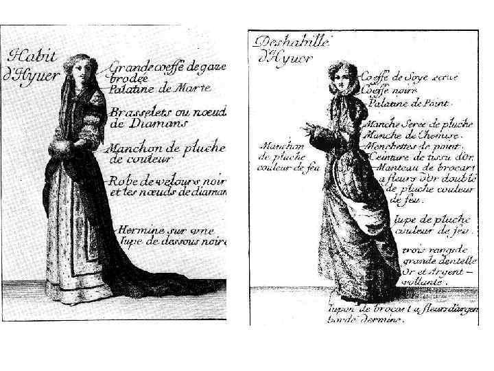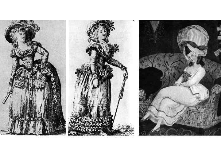 - украшения -роскошное нижнее белье - появление париков - множество лент
