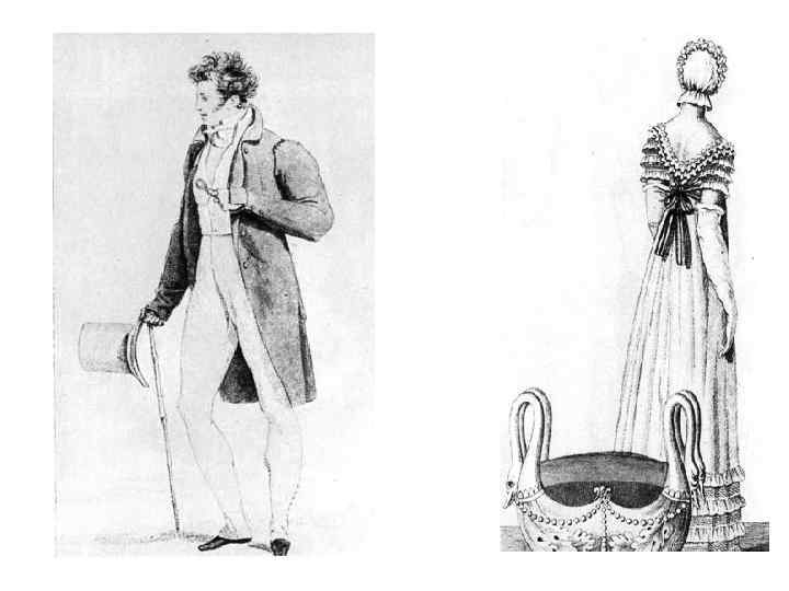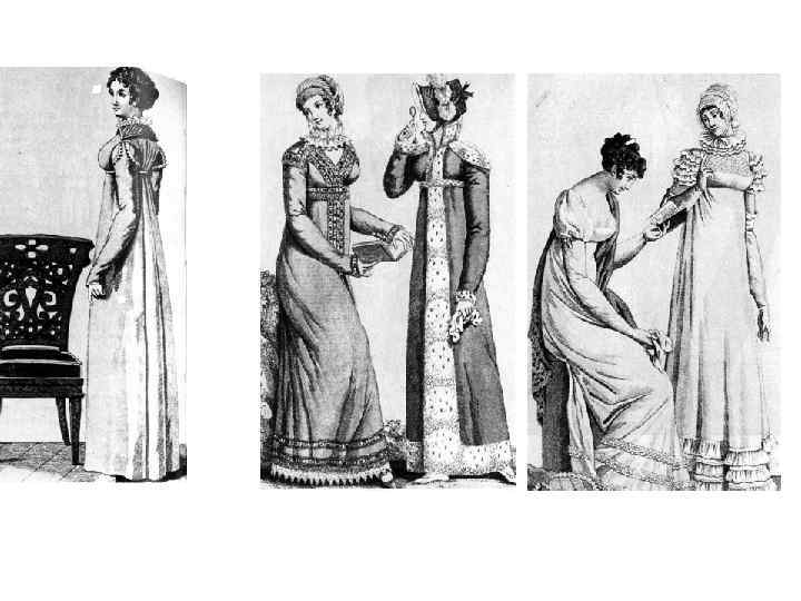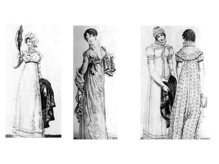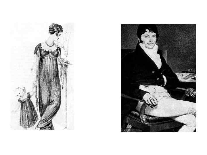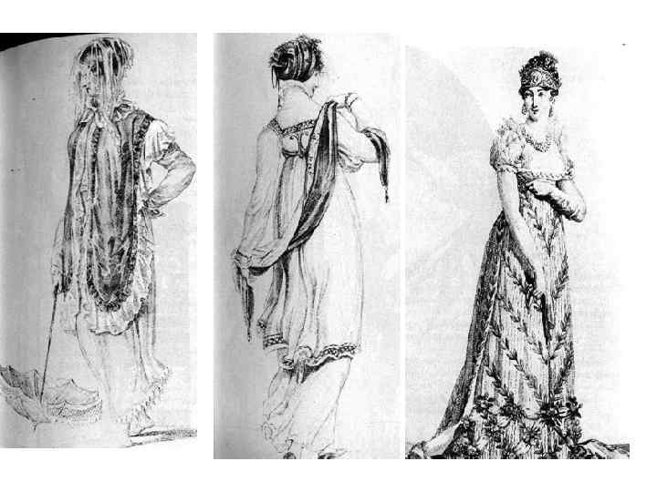 -античные мотивы -высокий лиф -мягкая драпировка юбки -упрощение мужского костюма -гастук