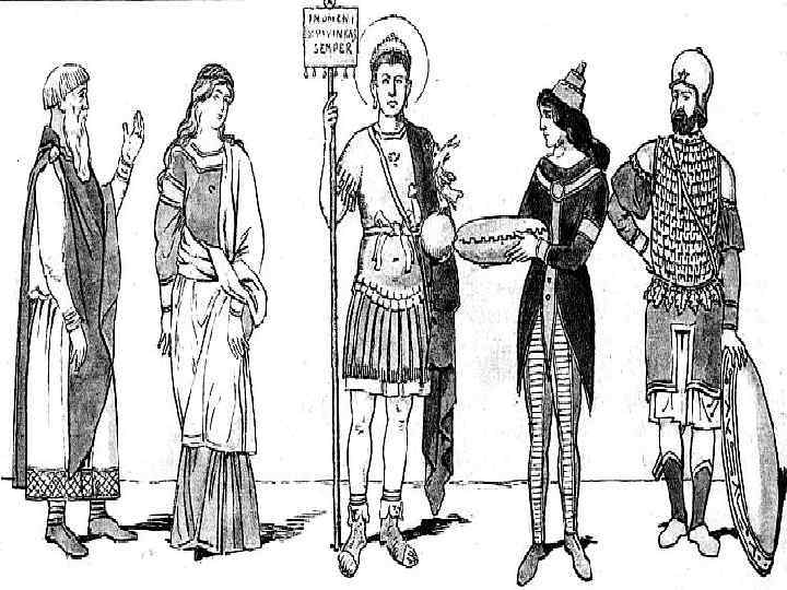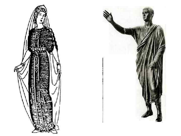 - сочетание античных, византийских и «варварских» традиций - одежда не прилегает к телу - нет складок