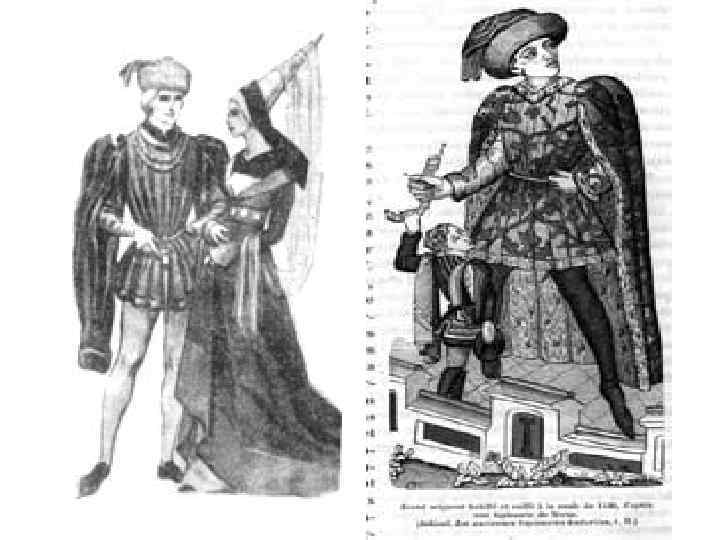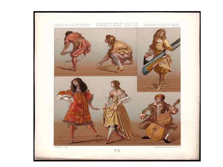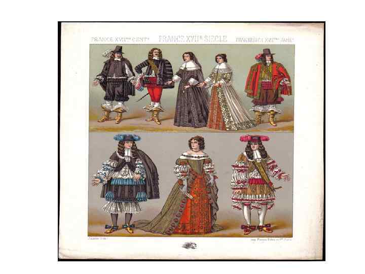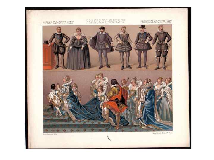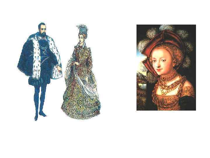 Мужчины - камзол Женщины -обнажение груди - шлейф -кружева