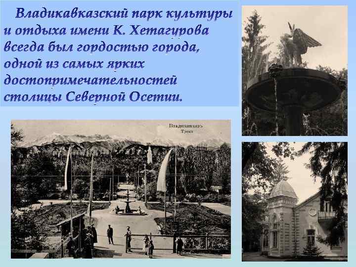 В 1860 году крепость стала городом. Владикавказ, который с самого начала формировался как интернациональный город, о чем свидетельствует наличие таких культовых сооружений как русские церкви и соборы, осетинская, армянская и греческая церкви, немецкая кирха, еврейские синагоги, римско-католический костел, суннитская и шиитская мечеть, являющиеся украшением города и памятниками архитектуры. И сегодня город говорит на языках более чем 100 национальностей.