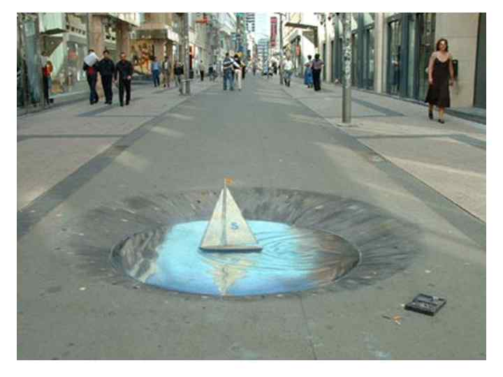 Глаз или мозг – кто кого? Этот оптический обман очень ярко демонстрирует, насколько при восприятии пространства и оценке расстояния до предметов и их величины мы используем перспективу. Проходя по зрительным трактам, сигналы, полученные каждым глазом, соответствующим образом обрабатываются мозгом в единое зрительное ощущение.
