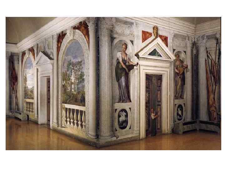 • Римское искусство – Визуальные иллюзии в технике фрески – Эффект театральной сцены – Использование точек схода – Отсутствие единой перспективной системы VP 1 VP 2