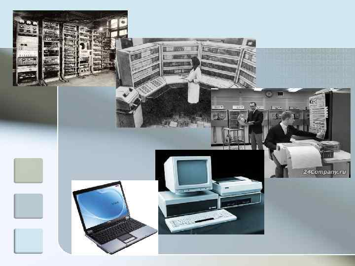 Поколения компьютеров Поколения ЭВМ Четвертое Показатель 80 -е гг. XXв. – настоящее время А Б Большие ИС (БИС) Сверхбольшие ИС Элементная база процессора (СБИС) Максимальная емкость ОЗУ, байт 105 107 109 Максимальное быстродействие +Многопроцес108 процессора (оп/с) сорность + Новые +Непроцедур-ные Языки программирования процедурные ЯВУ Монохромный Цветной + Средства связи пользователя с графический ЭВМ дисплей, клавиатура, клавиатура "мышь" и др.