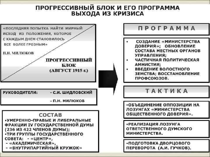 Либеральная буржуазия стремиться взять власть в свои руки Июль 1915 г. – Особое совещание (депутаты Госдумы) Август 1915 г. – Прогрессивный блок (депутаты Госдумы+Госсовет)