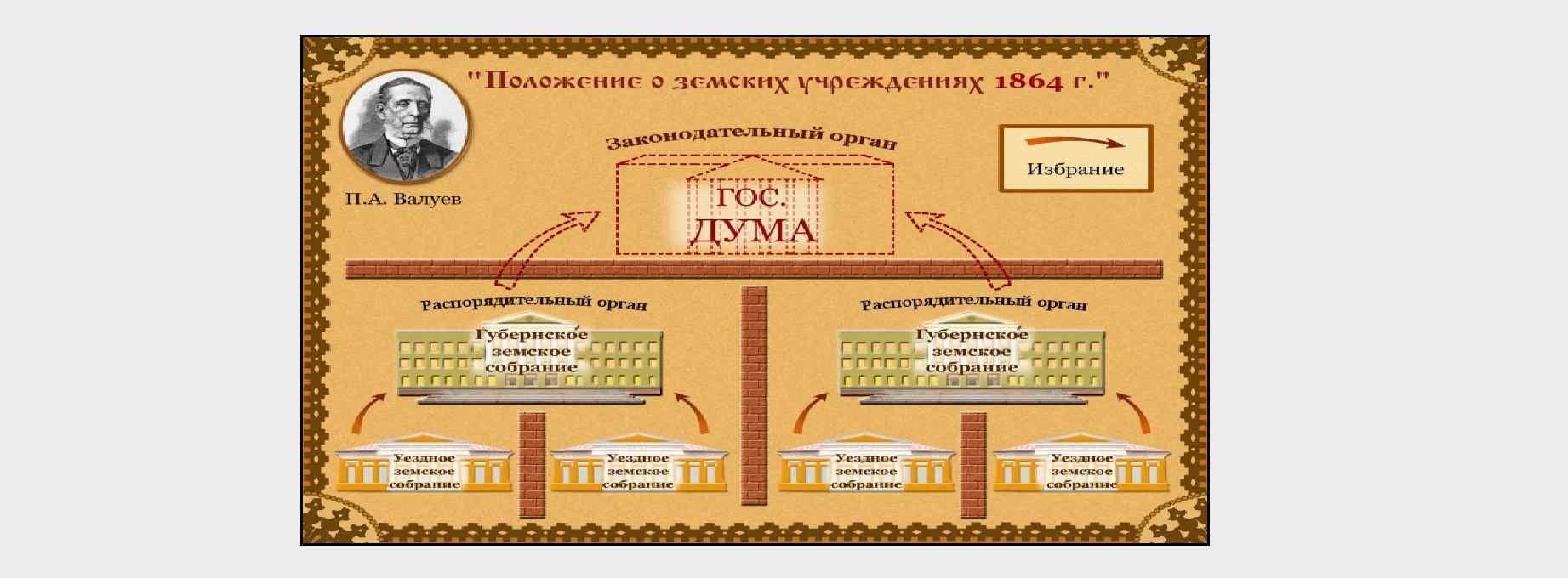 Первое представительное учреждение парламентского типа было созвано лишь в 1906 г. Дважды ее разгоняло правительство, но она просуществовала около 12 лет (первая, вторая, третья, четвертая Государственные Думы). Во всех четырех думах преобладающее положение занимали представители дворянства, торговопромышленная буржуазии, городской интеллигенции и крестьянства. Показательным было то, что в Думе интеллигенция использовала навыки, приобретенные в университетских аудиториях и судебных прениях, а крестьяне несли с собой в Думу многие демократические традиции общинного самоуправления.