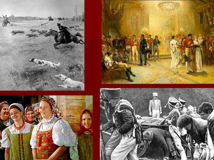 Эпоха в романе n 1 том - события 1805 г. (война Россия в союзе с Австрией с Францией, Аустерлицкое и Шенграбенское сражения) n 2 том - 1806 -1807 г. г. (война в союзе с Пруссией 1806 г. ; Тильзитский мир) n 3 и 4 тома - Отечественная война 1812 г. (переход французской армии через Неман, отступление русских, сдача Смоленска, Бородинское сражение, совет в Филях, оставление Москвы, партизанское движение, фланговый марш Кутузова, Тарутинское сражение, распад армии захватчиков) n Эпилог - 1820 г. (тайные дворянские общества)