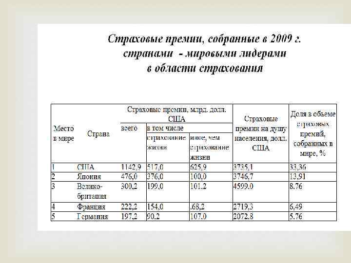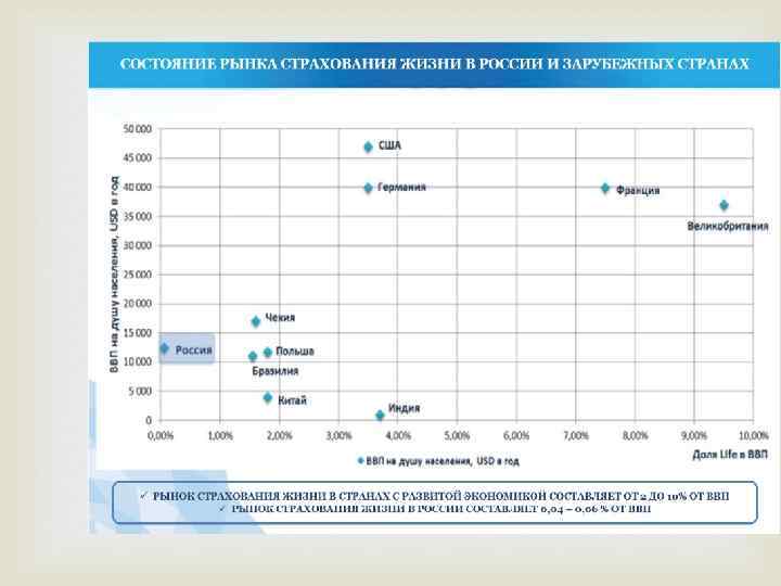 Страхование сегодня В настоящее время на страховом рынке России работает около 1400 страховых компаний, состав которых по формам собственности имеет следующие показатели: смешанная 58 %; частная 36 %; государственная 5%; муниципальная 1 %. Доля страховых премий, собираемых всеми страховщиками, составляет менее 5% от внутреннего валового продукта, тогда как в странах с развитой рыночной экономикой этот показатель составляет 8 10% от ВВП. 6