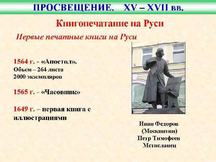Крупнейшим событием культуры стало возникновение российского книгопечатания. Первопечатник Иван Федоров