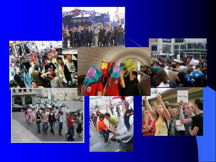 В 2003 -м году впервые заявили о себе мобберы (флэшмобберы) (от англ. flashmob – «мгновенная толпа» ). Это сетевые пользователи, инициирующие и проводящие краткосрочные уличные акции. Технология флэшмоба достаточно проста: по адресам потенциальных мобберов, зарегистрировавшихся на соответствующем сайте (например, www. flashmob. com), рассылается инструкция с изложением сюжета акции, перечнем необходимых аксессуаров, указанием точного времени и путей отхода. Пример флэшмоб-акции: 30 августа 2003 г. в Одессе около полусотни мобберов, одетых во все черное, устроили минуту молчания рядом с куклой клоуна, украшающей вход в местный «Макдональдс» ; возложив к ногам клоуна охапку траурных цветов, толпа рассеялась.