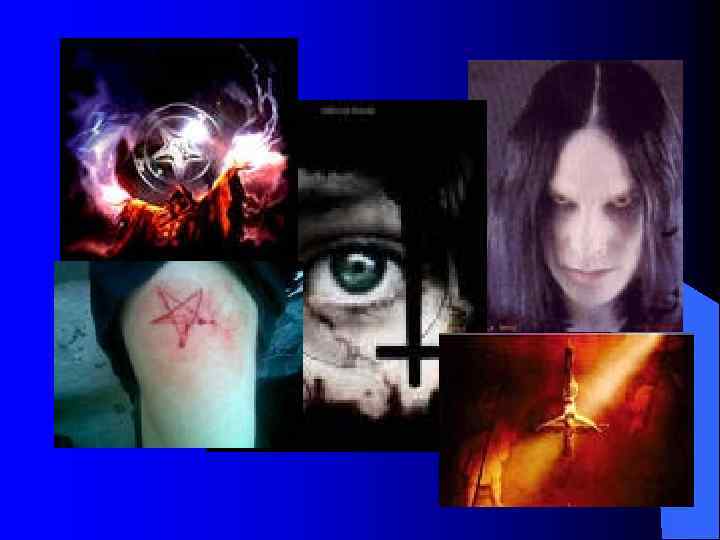 В середине 90 -х годов в России формируется сатанинская субкультура. Это субкультура металлистов отделившаяся от группы «черных металлистов» , сблизившаяся с приверженцами Церкви сатаны. Копируя «адскую» эстетику своих кумиров, доморощенные металлисты одеваются во все черное, носят майки с «бесовскими» рожами и черепами, цепи, перевернутые пентаграммы, рисуют эти же пентаграммы на стенах, прибавляя число « 666» . Мировоззрением сатанистов является упрощенное, вывернутое наизнанку христианство: место Иисуса занимает Сатана. Развлечения у них разные: ночные походы на кладбища, осквернение церквей, нападения на хиппи с целью принуждения их поклониться Сатане. Некоторые из сатанистов заигрываются: известны случая, когда подростки убивали своего товарищи, обставляя это как ритуальное жертвоприношение.