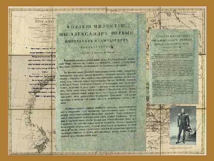 ВЕЛИКОЕ КНЯЖЕСТВО ФИНЛЯНДСКОЕ (ВКФ) Статус финских земель в составе Швеции с 1581 года; автономное административно-территориальное образование на северо-западе Российской империи. Присоединено к России в ходе русско-шведской войны 1808 -09 годов, о чём объявлено в манифесте от 20. 3(1. 4). 1808. На Боргоском сейме 1809 года император Александр I заявил о сохранении в ВКФ лютеранской религии и шведского законодательства, а представители финских сословий принесли присягу Александру I; для жителей ВКФ введено финляндское подданство (для пребывания на остальной территории империи они оформляли специальные документы). На рубеже 1811 -12 годов российским правительством в состав ВКФ переданы районы так называемой Старой Финляндии - Карельский перешеек с Выборгом и северное Приладожье (присоединены к России по условиям Ништадтского мира 1721 года и Абоского мира 1743 года).