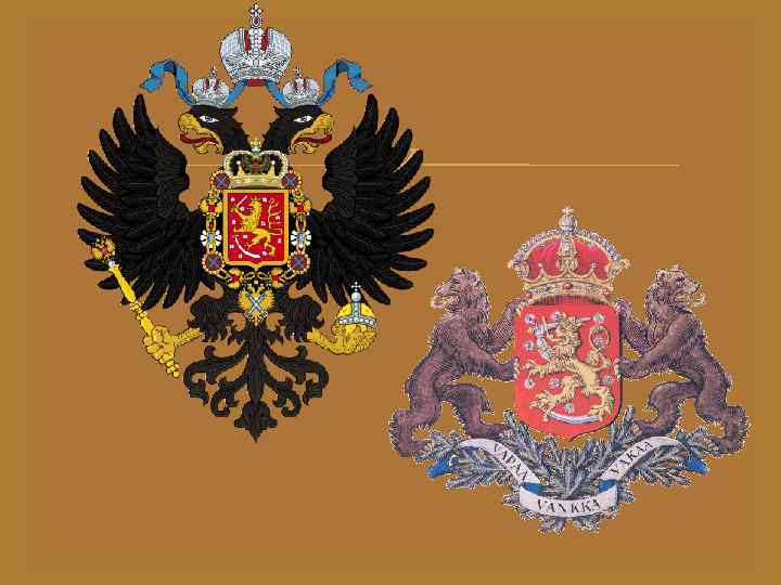 Геральдика Великого Княжества Финляндского Великое Княжество Финляндское. Утвержден 26 октября 1809 г. Описание герба: "Щит имеет красное поле, покрытое серебряными розетами, в коем изображен золотой лев с золотой на голове короною, стоящий на серебряной сабле, которую поддерживает левой лапою, а в правой держит серебряный меч, вверх подъятый".
