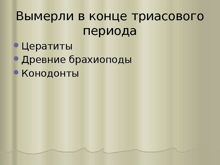 Вымерли в конце триасового периода Цератиты Древние брахиоподы Конодонты