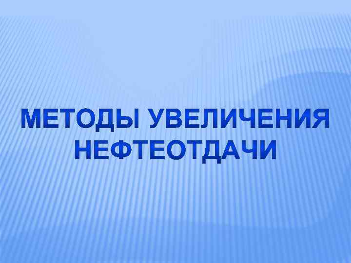 Перспективы дополнительного увеличения коэффициента нефтеотдачи, по сравнению с методом заводнения (а для вязких нефтей по сравнению с режимом истощения), связывались, в основном, с так называемыми третичными методами – тепловыми, газовыми и химическими. Ø Особо отметим, что все перечисленные выше мероприятия касались третичных методов воздействия на пласт: Ø тепловых, Ø газовых,
