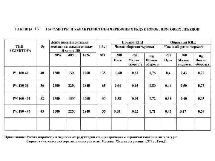 1. 5 Расчетное обоснование и выбор основных узлов лебедки лифта 1. 5. 1 Расчет мощности привода и выбор двигателя Мощность двигателя лебедки (1. 13) расчетное окружного усилия КВШ к. Н. КПД механизма привода лебедки с частотным регулированием. По данным таб. 1. 2 для работы привода на большой скорости выбирается двигатель так, чтобы табличное значение мощности было равно или превышало расчетное значение. Необходимо записать марку двигателя и основные характеристики большой скорости. Из таблицы малой скорости надо выписать момент инерции ротора. 1. 5. 2 Расчет параметров и выбор редуктора Предварительно производится определение рабочего диаметра КВШ (1. 14) допустимое соотношение между диаметром КВШ и каната из условия долговечности каната (регламентпо лифтам).