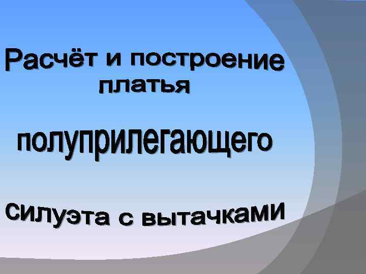 Распределение суммы талевых вытачек Распределение суммы вытачек зависит от: силуэта; направления моды; особенностей телосложения. ∑В = (Сг 3+Пг)-(Ст+Пт) = 10, 4 см ≈50% боковая вытачка (5, 2 см) ≈30% вытачка на спинке (3, 0 см) ≈20% вытачка на переде (2, 2 см) В полуприлегающем силуэте: 1. Максимальные растворы талевых вытачек на переде и спинке у типовых фигур ≈ по 3, 5 см 2. Максимальный раствор итоговой вытачки в боковом шве 7, 0 см