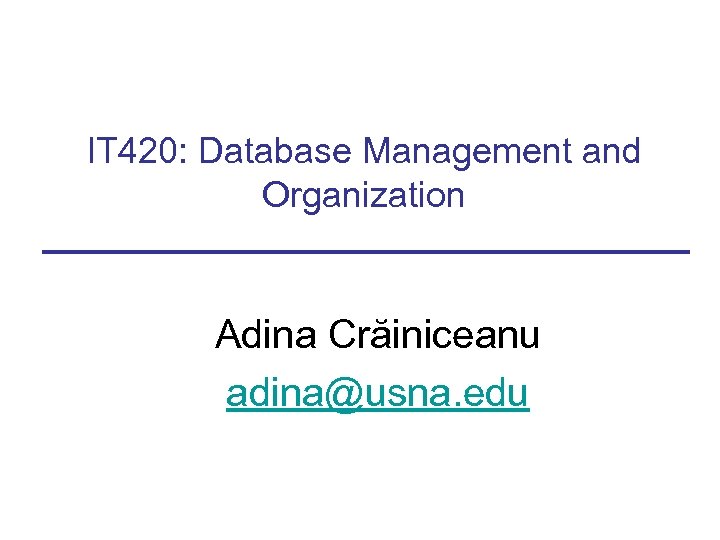 IT 420: Database Management and Organization Adina Crăiniceanu adina@usna. edu