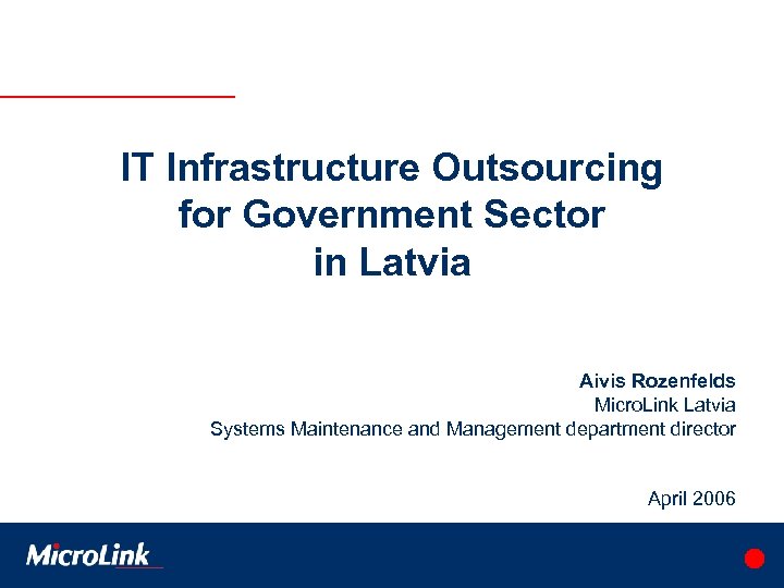 IT Infrastructure Outsourcing for Government Sector in Latvia Aivis Rozenfelds Micro. Link Latvia Systems Maintenance and Management department director aivis. rozenfelds@microlink. lv April 2006
