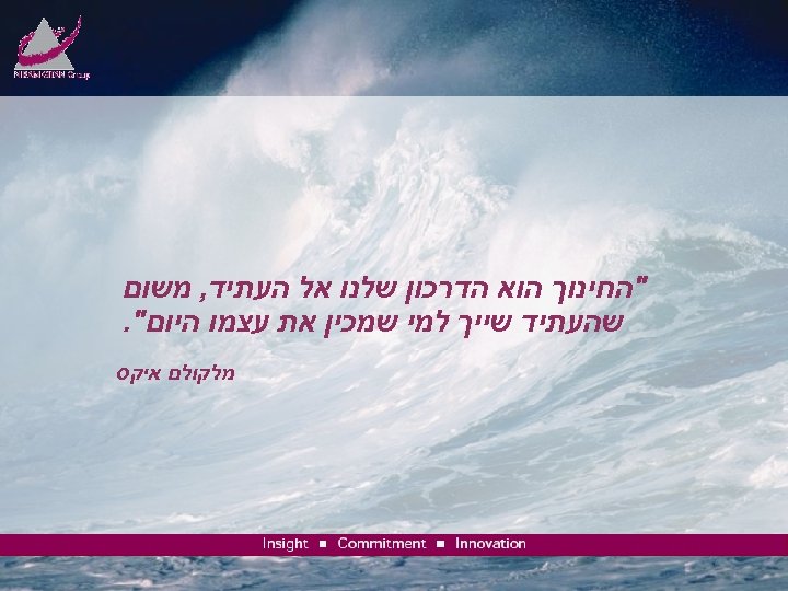 "החינוך הוא הדרכון שלנו אל העתיד, משום שהעתיד שייך למי שמכין את עצמו היום". מלקולם איקס