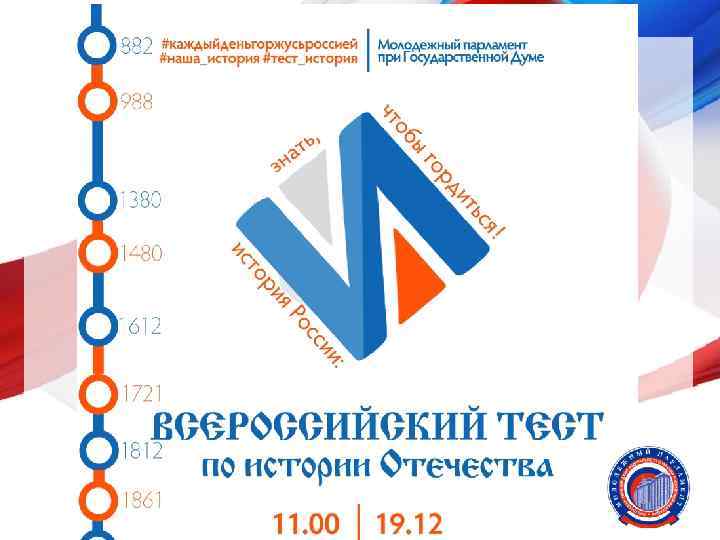Всероссийский тест по истории Отечества 75 регионов История России: знать, чтобы гордиться! заявлены 553 площадки