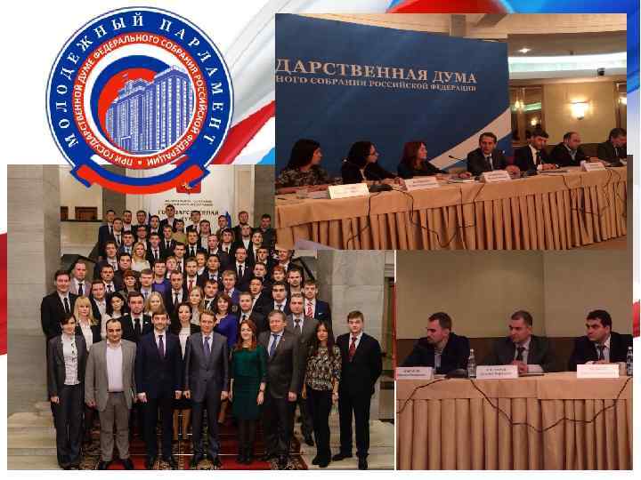 Система молодежного парламентаризма в России Федеральный уровень: Молодежный парламент при Государственной Думе Региональный уровень: Молодежные парламенты субъектов РФ (78) Муниципальный уровень: Молодежные парламентские структуры муниципальных образований (более 1 500 муниципальных молодежных парламентов, около 30 000 молодежных парламентариев)