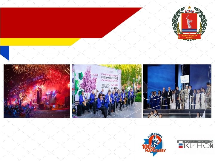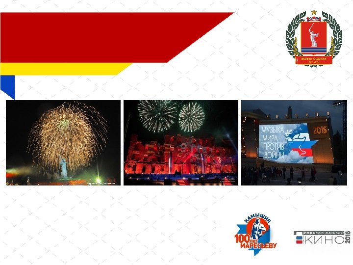 Народное творчество и кинообслуживание Государственное учреждение культуры ''Волгоградский областной центр народного творчества'' *В 2015 году произошла реорганизация ГБУК «Волгоградский областной киновидеоцентр» путем присоединения к ГБУК «Волгоградский областной центр народного творчества» в соответствии с постановлением Администрации Волгоградской области 404 -п от 13. 07. 2015 года *В учреждениях культуры клубного типа Волгоградской области функционирует 7163 клубных формирования различной направленности, 5074 – самодеятельные художественные коллективы; * В 2015 г. в муниципальных культурно-досуговых учреждениях для населения проведено 164674 культурно-массовых мероприятия. *Количество выданных кинопрограмм, обслуженных киноустановок составило 2404 единицы.