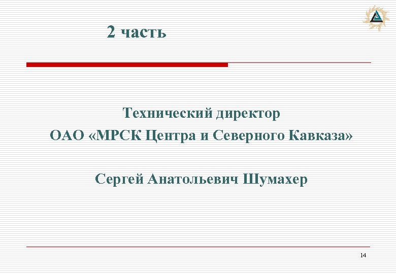 2 часть Технический директор ОАО «МРСК Центра и Северного Кавказа» Сергей Анатольевич Шумахер 14