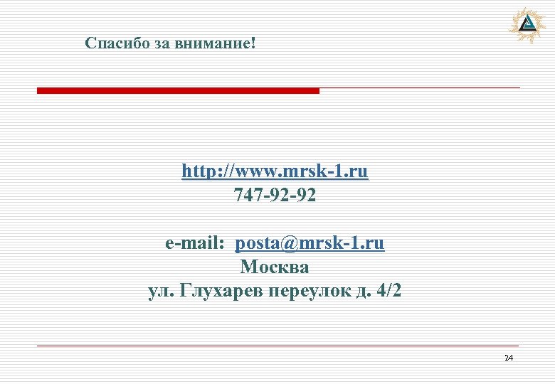 Спасибо за внимание! http: //www. mrsk-1. ru 747 -92 -92 e-mail: posta@mrsk-1. ru Москва ул. Глухарев переулок д. 4/2 24