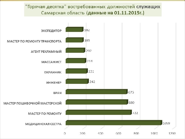 В структуре приёма вузов Самарской области (2015 г. в сравнении с 2012 г. ): Уменьшен приём по направлениям подготовки: Гуманитарные науки – на 46% Экономика и управление – на 26% Культура и искусство – на 30% Увеличен приём по направлениям: Энергетика, энергетич. машиностроение и электротехника – на 14% Металлургия, машиностроение и материалообработка – на 17% Авиационная и ракетно-космическая техника и ряд других инженерных направлений – на 10%