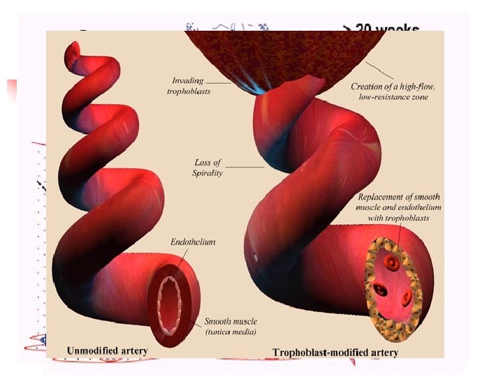 Uterin arter Doppler Preeklampsi ve IUGR gibi durumlarda Anormal Uterin arter Doppler çalışmaları yetersiz plasentasyonu işaret eder ve bu histolojik çalışmalarla bu spiral arterlerin maternal trofoblastlarla defektif tutulumu kolere edilmiştir
