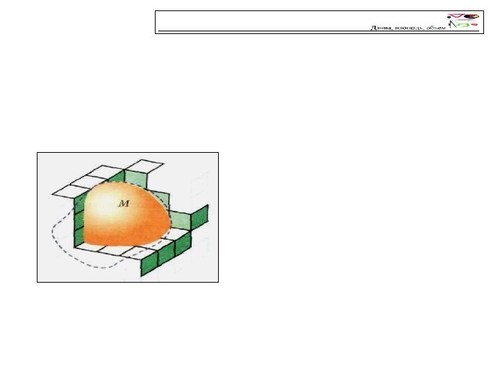 ПЛОЩАДЬ Представим, что такая палетка лежит на плоскости. Иначе говоря, плоскость разбита на квадраты со стороной 1. Если фигура F полностью помещается в фигуре, составленной, например, из 81 квадрата палетки, и содержит фигуру из 43 квадратов (Рис. 2), то 43≤ s(F) ≤ 81. Если каждый квадрат палетки разбить на 100 квадратов, а затем квадрат второй палетки также разбить на 100 квадратов, то точность измерения увеличится. Используя набор палеток со все более мелкой сеткой, мы будем приближаться к пределу – площади s(F) фигуры F. В этом случае фигуру F называют квадрируемой (по Жордану), а число s(F) – площадью фигуры. Все фигуры, которые можно сколь угодно точно приблизить многоугольниками квадрируемы по Жордану (Рис. 3).