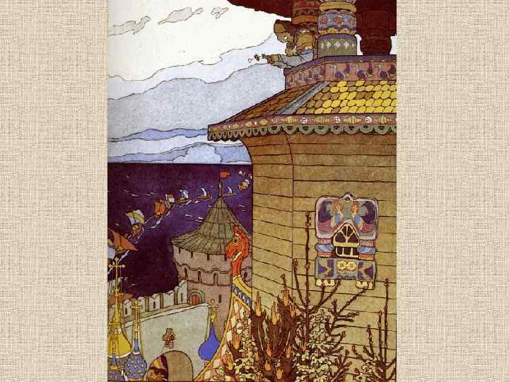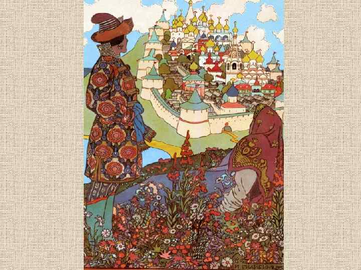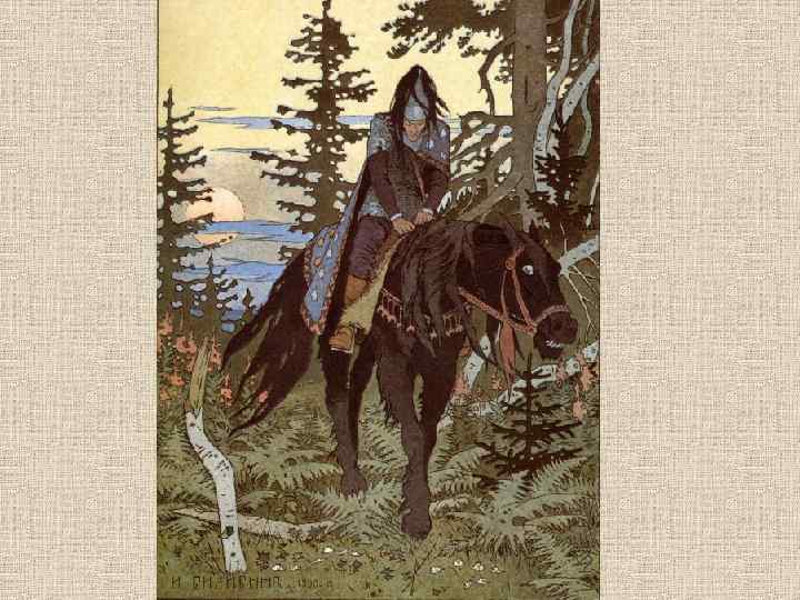 Билибинский стиль. Для билибинского рисунка характерно графическое представление. Начиная работу над рисунком Билибин набрасывал эскиз будущей композиции. Чёрные орнаментальные линии четко ограничивают цвета, задают объем и перспективу в плоскости листа. Заполнение акварельными красками черно-белого графического рисунка только подчеркивают заданные линии. Для обрамления рисунков Билибин щедро использует орнамент.